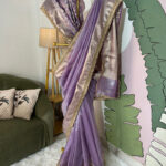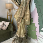 Discover timeless elegance with a contemporary twist in our Banarasi Tissue Silk Saree, thoughtfully designed to bring together traditional artistry and modern styling. Crafted from luxurious tissue silk, this saree features an all-over pattern of graceful gold zari stripes running across the body, giving it a luminous, structured look while maintaining an incredibly soft drape.