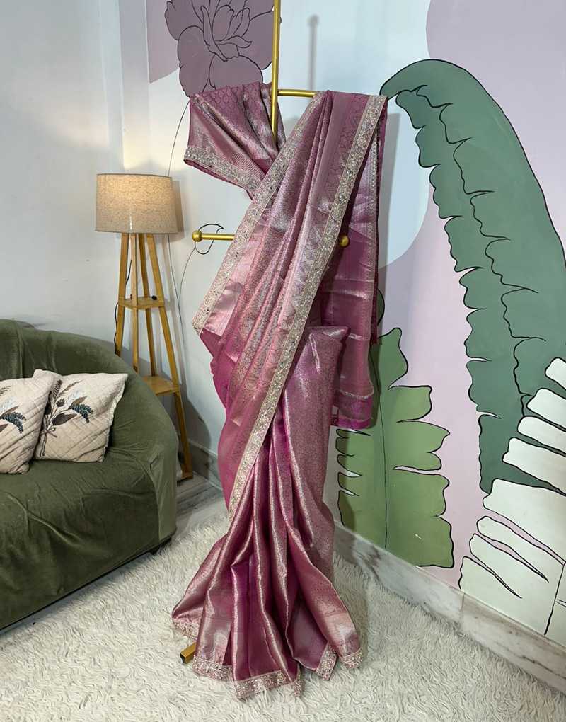 Rani Pink Designer Kanjeevaram Tissue Saree