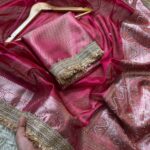 Step into timeless elegance with our Designer Banarasi Tissue Maharani Silk Saree in a stunning dual-tone combination of Rani Pink and Royal Blue. Crafted from premium quality tissue silk, this saree radiates a royal sheen and fluid grace that makes it perfect for weddings, festive occasions, and grand celebrations.
