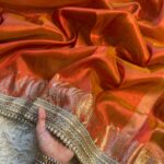 Step into timeless elegance with our Designer Banarasi Tissue Maharani Silk Saree in a stunning dual-tone combination of Rani Pink and Royal Blue. Crafted from premium quality tissue silk, this saree radiates a royal sheen and fluid grace that makes it perfect for weddings, festive occasions, and grand celebrations.